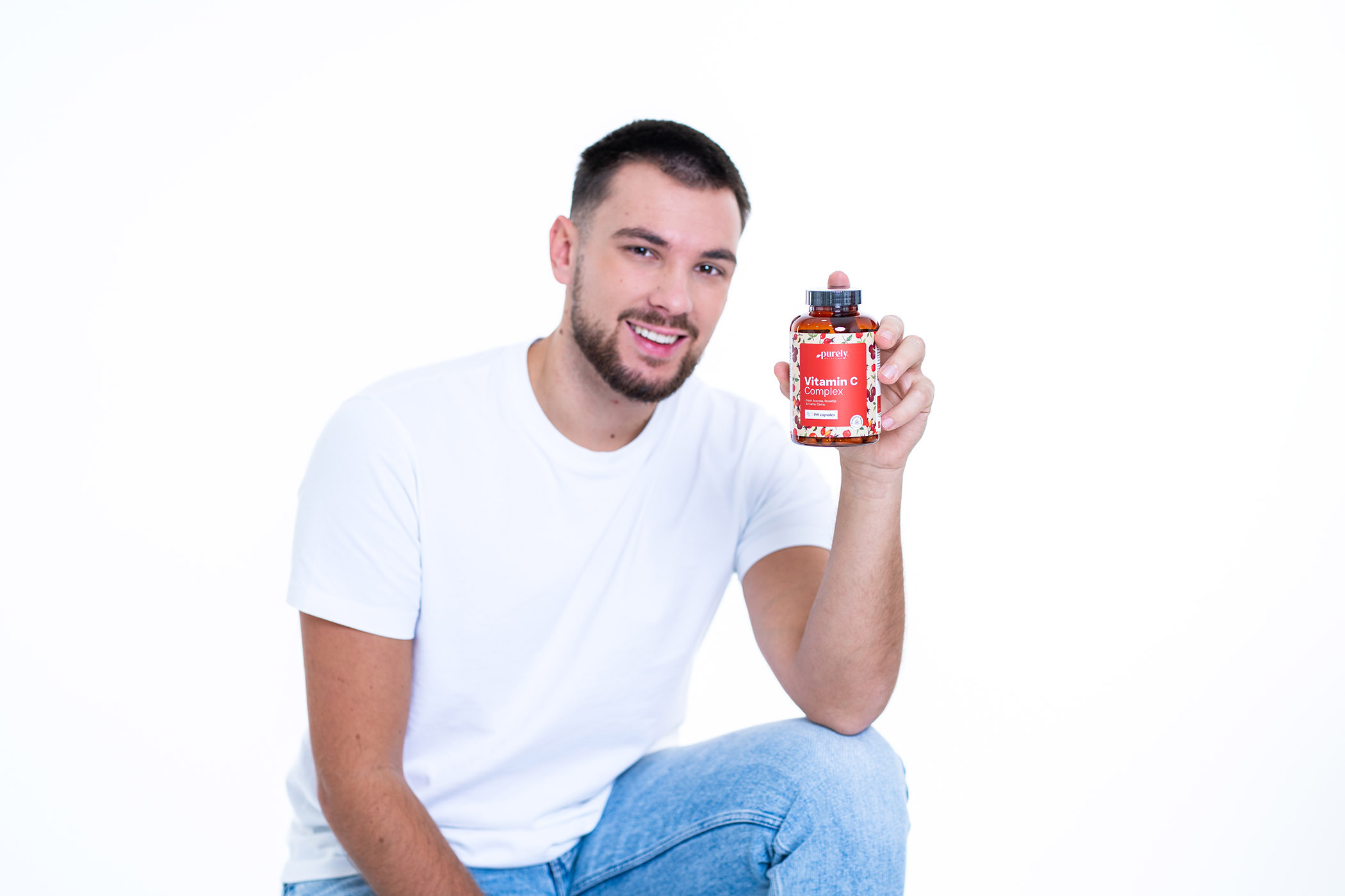Ingredientes: L-ascorbato de calcio, extracto de frutos de acerola 15:1 (Malpighia glabra; 25 % de vitamina C), extracto de frutos de camu camu 5:1 (Myrciaria dubia; 30% de vitamina C), almidón de patata, extracto de frutos de escaramujo 20:1 (Rosa canina; 45% de vitamina C), hidroxipropilmetilcelulosa (HPMC; cápsula de origen vegetal).