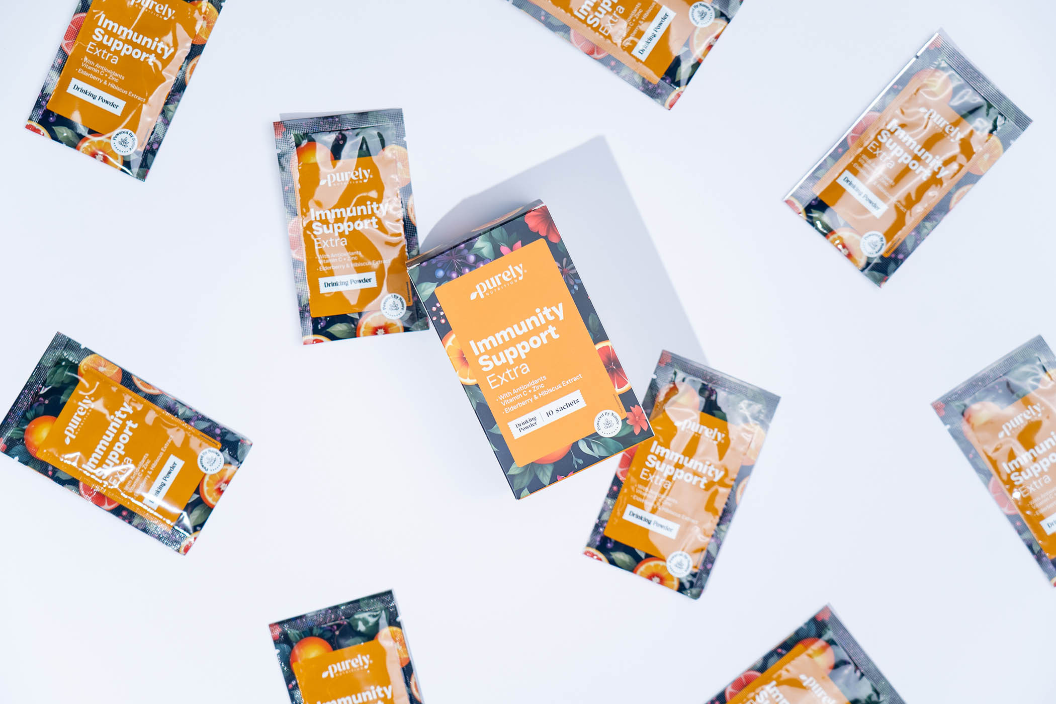 Ingredientes: maltodextrina, ácido L-ascórbico (vitamina C), concentrado de grosella negra en polvo 5 %, concentrado de frambuesa en polvo 3 %, sales magnésicas de ácido cítrico, extracto de saúco negro (Sambucus nigra) 2 %, extracto de flores de hibisco (Hibiscus sabdariffa) 1 %, aromas, bisglicinato de zinc, antiaglomerante: dióxido de silicio, endulzante: sucralosa.