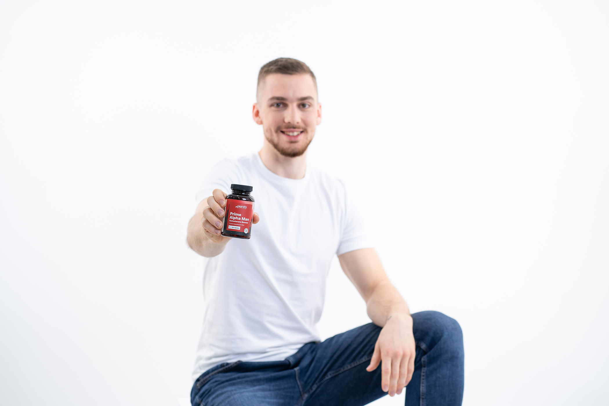 Ingredientes: extracto de fenogreco 10: 1, ácido D-aspártico, cápsula vegana de HPMC, extracto de ashwagandha KSM66 TM , extracto de hojas de ortiga 10: 1, extracto de ginseng rojo 10: 1, zinc (citrato de zinc), estearato de magnesio, vitamina B6 (clorhidrato de piridoxina), extracto de pimienta negra (95% de piperina), selenio (selenito de sodio), vitamina K1 (filoquinona), vitamina D3 (colecalciferol).