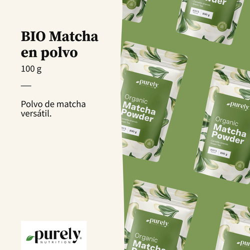 Ingredientes: hojas de té verde matcha (Camellia sinensis) en polvo. De cultivo ecológico certificado. Distribuido por SI-EKO-002. Agricultura fuera de la UE.