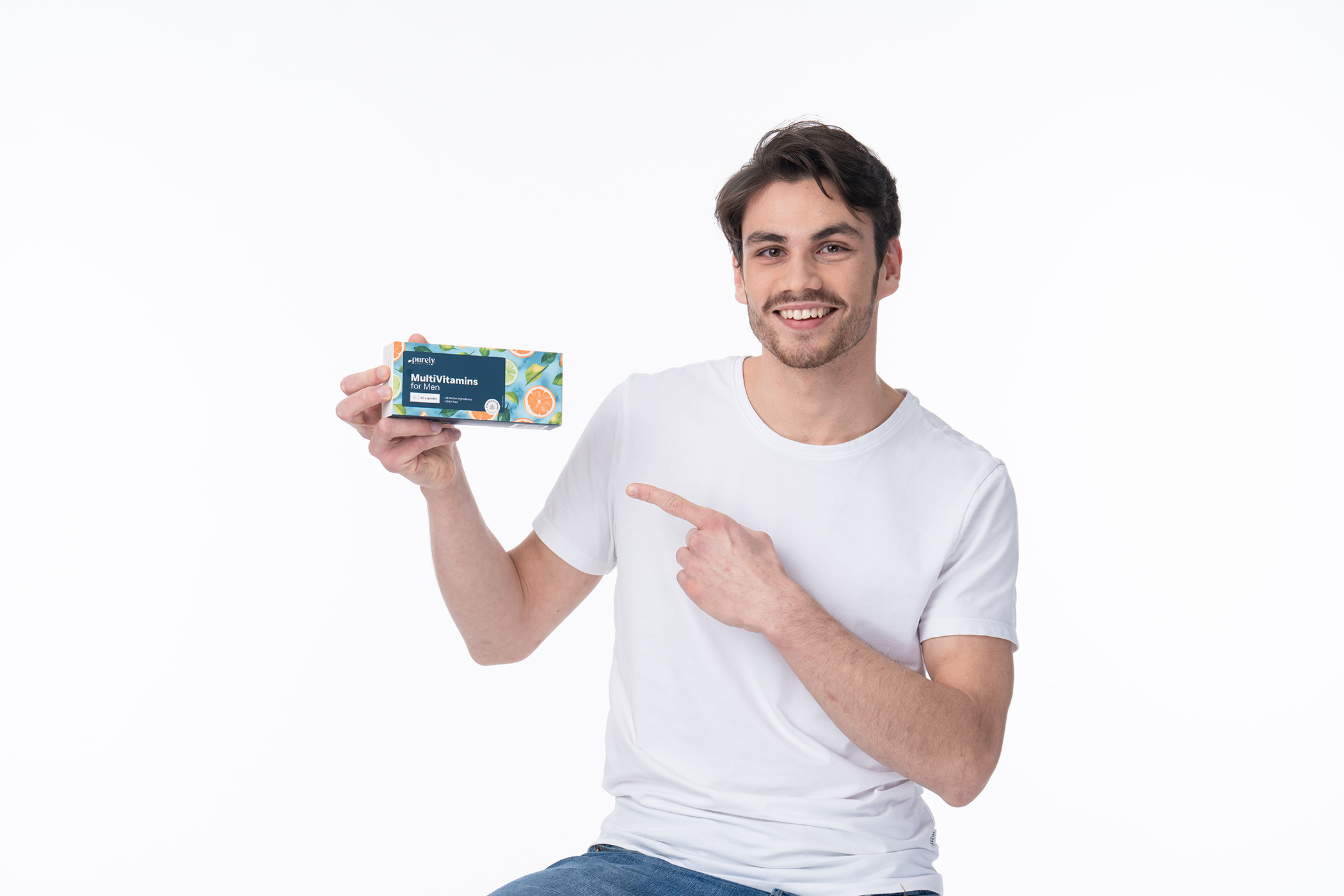 Ingredientes: vitaminas (D-alfa-tocoferil acetato (vitamina E), nicotinamida (vitamina B3), ácido ascórbico (vitamina C), pantotenato cálcico (vitamina B5), acetato de retinol (vitamina A), menaquinona (vitamina K), clorhidrato de piridoxina (vitamina B6), colecalciferol (vitamina D3), riboflavina (vitamina B2), mononitrato de tiamina (vitamina B1), ácido pteroilmonoglutámico (vitamina B9), D-biotina (vitamina B7), cianocobalamina (vitamina B12)), minerales (óxido magnésico, sulfato ferroso, sulfato de zinc, sulfato cúprico, sulfato de manganeso, selenito sódico, cloruro de cromo (III), molibdato sódico, yoduro potásico, bisglicinato de manganeso, picolinato de cromo), cápsula (gelatina, colorantes: azorrubina, óxidos e hidróxidos de hierro), maltodextrina, relleno: celulosa microcristalina, antiaglomerantes: sales magnésicas de ácidos grasos y dióxido de silicio, extracto de hojas de Yerba mate (Ilex paraguariensis), extracto de raíz de ginseng (Panax ginseng), extracto de jengibre (Zingiber officinale), licopeno, lecitina de soja, luteína de extracto de flores de tagete (Tagetes erecta).