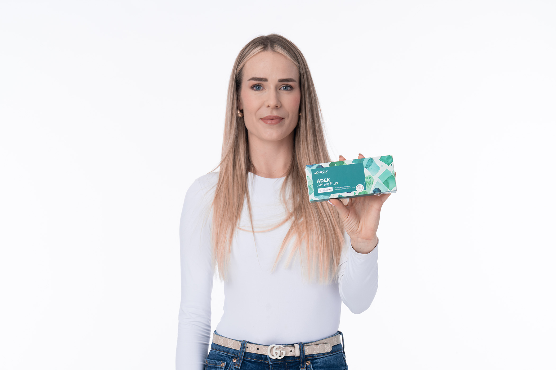 "ADEK Active Plus forma parte de mi rutina diaria para reforzar mi sistema inmunológico y unos huesos sanos."