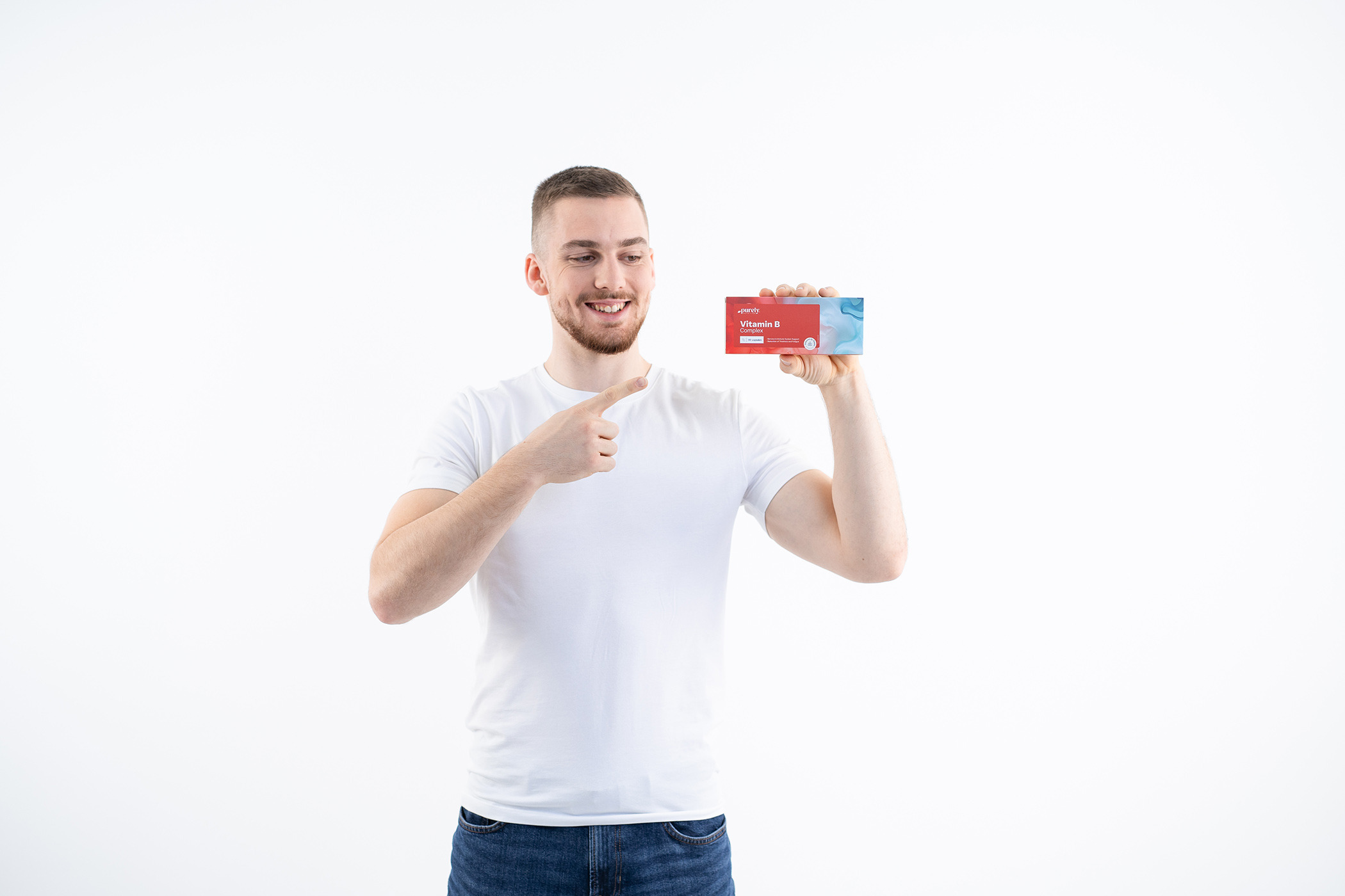 Ingredientes: agente de carga: celulosa microcristalina, nicotinamida (vitamina B3), pantotenato de calcio (vitamina B5), clorhidrato de piridoxina (vitamina B6), mononitrato de tiamina (vitamina B1), riboflavina (vitamina B2), ácido fólico (vitamina B9), D-biotina (vitamina B7), cianocobalamina (vitamina B12), cápsula (gelatina), antiaglomerante: sales magnésicas de ácidos grasos, colorante: carbonato de calcio.
